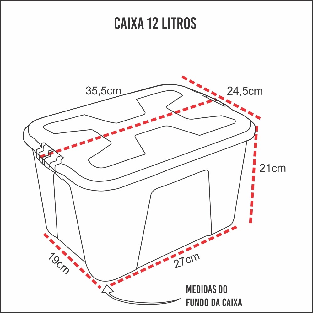 Caixa Organizadora com Tampa e Travas 12 litros