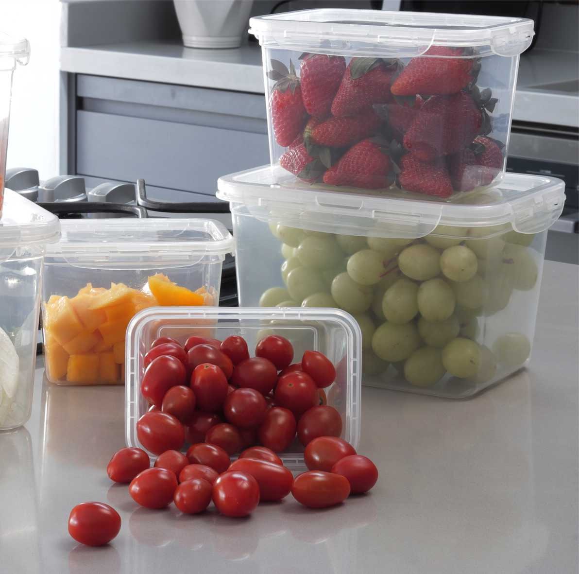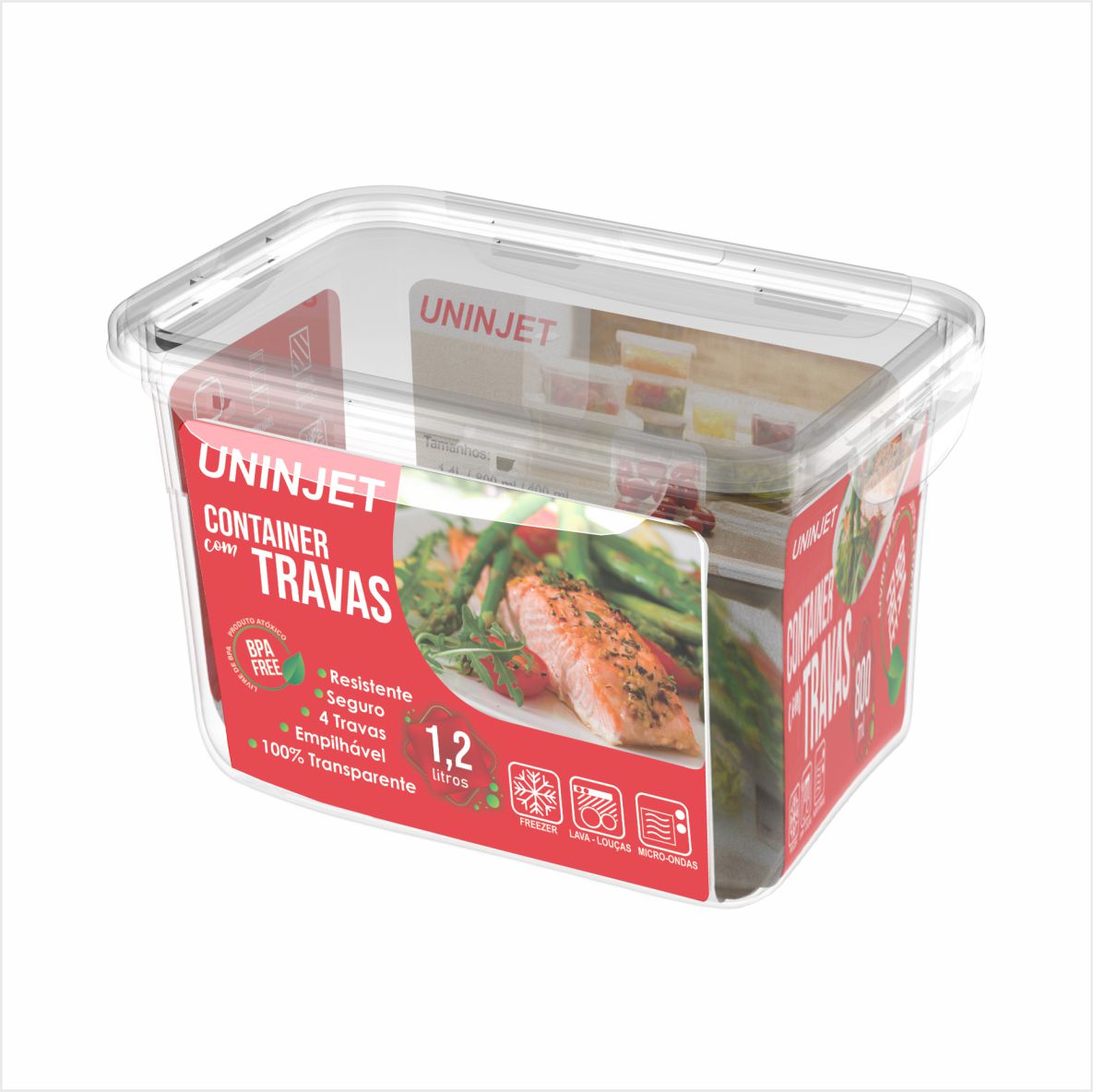 O novo container com 4 travas tem uma excelente vedação, totalmente transparente, permite que veja o conteúdo perfeitamente. Empilhável, auxilia na hora de organizar os alimentos.