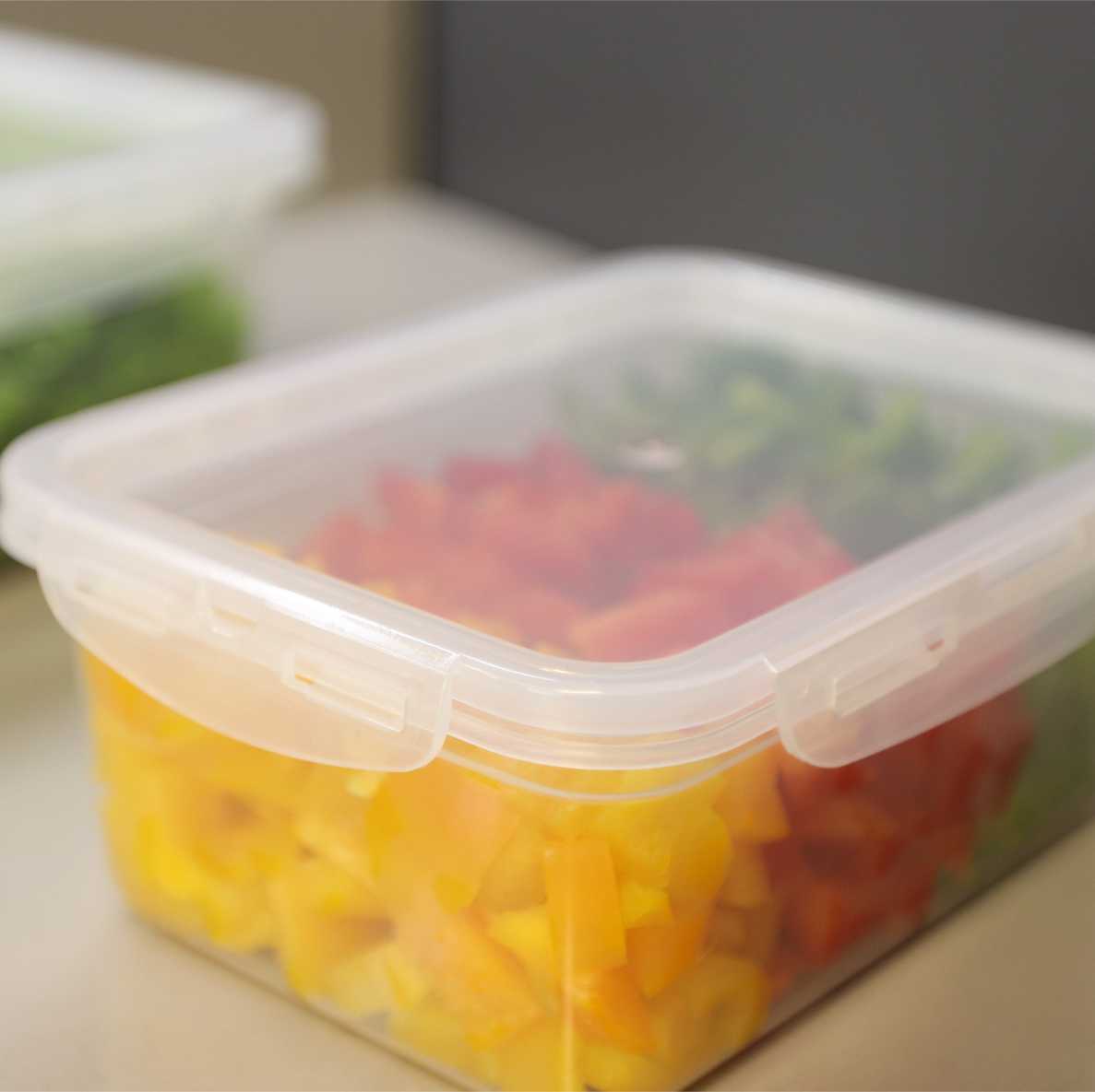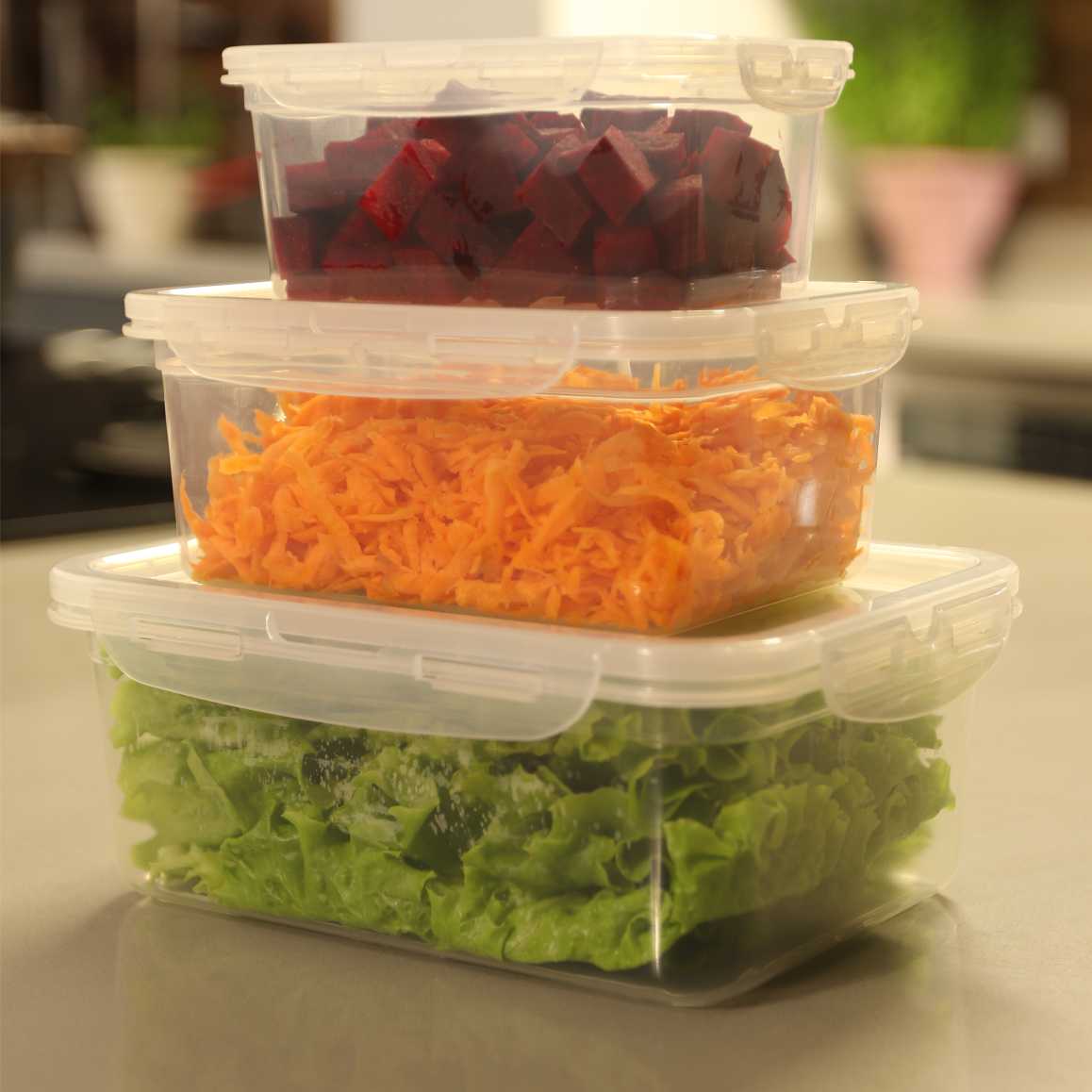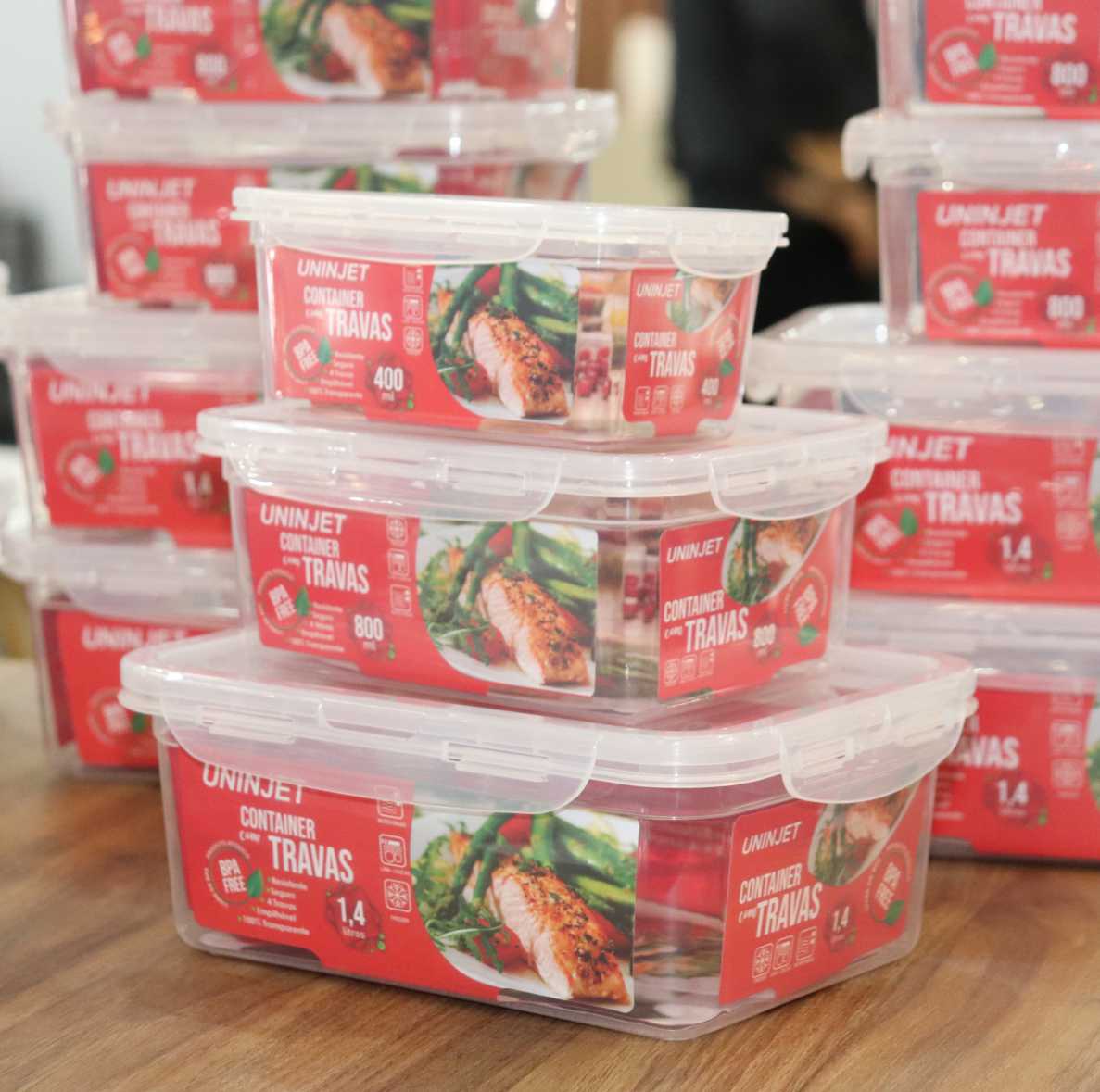 O novo container com 4 travas tem uma excelente vedação, totalmente transparente, permite que veja o conteúdo perfeitamente. Empilhável, auxilia na hora de organizar os alimentos.